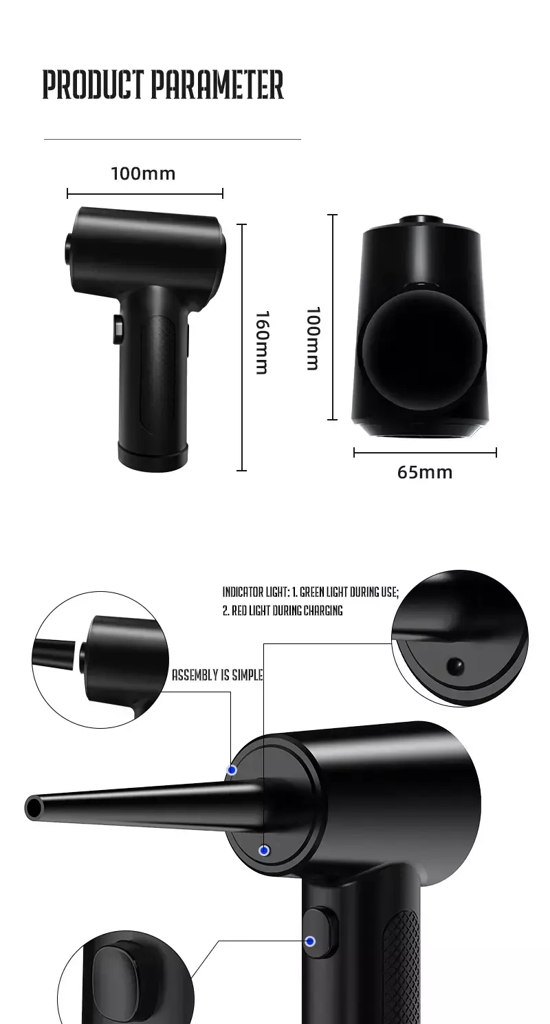 • Espanador do ar comprimido:Este soprador de ar sem fio portátil é um espanador de ar comprimido, perfeito para remover poeira e migalhas do computador, teclado e carro.